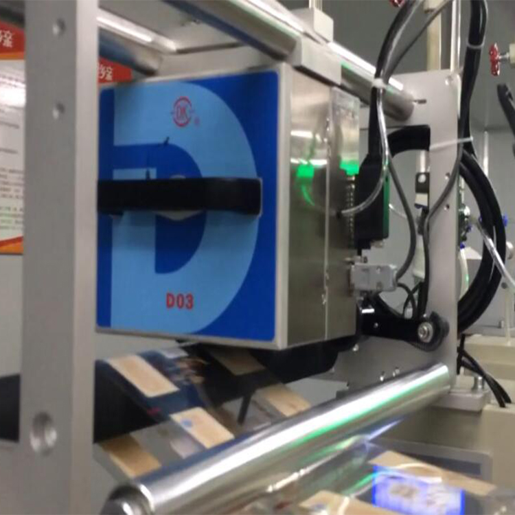 打碼時(shí),打印頭與包裝膜有一個(gè)相對(duì)運(yùn)動(dòng),在連續(xù)式包裝機(jī)上,包裝膜運(yùn)行時(shí) ,打印頭快速地壓在包裝膜上,打印出內(nèi)容。完成一次動(dòng)作后自動(dòng)彈起復(fù)位,準(zhǔn)備打下一袋。
